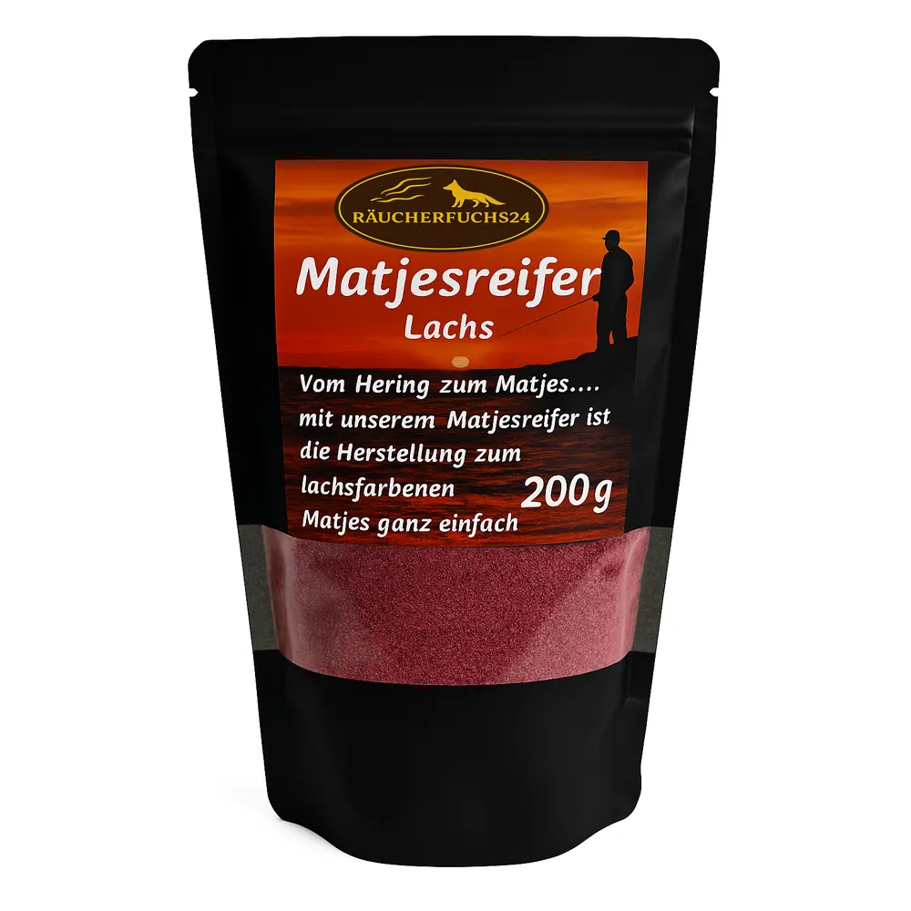 Matjesreifer Rot Lachs ist eine fein abgestimmte Gewürzmischung zur Matjesherstellung und Heringsreifung mit lachsfarbener Optik. Ideal für Matjes selber machen und Hering einlegen – für ein mildes, ausgewogenes Aroma. Eine Packung reicht für ca. 4 kg Fisch.