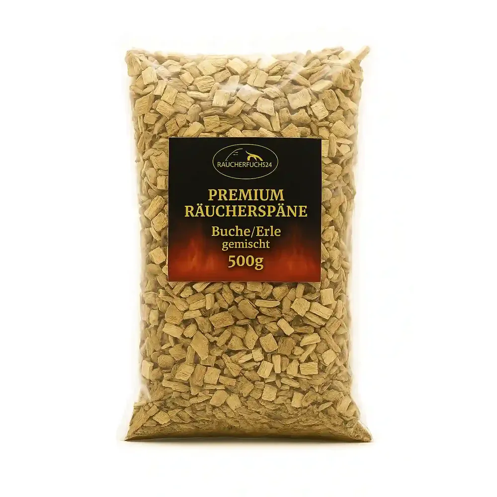 Räucherspäne Erle-Buche gemischt 3–5 mm 500 g sind hochwertige Räucherchips aus naturbelassenem Erlen- und Buchenholz für aromatisches Räuchern von Fisch, Fleisch und Gemüse. Die Kombination aus Erle und Buche sorgt für ein ausgewogenes, mild-würziges Raucharoma und eine gleichmäßige Rauchentwicklung. Durch die Körnung von 3–5 mm eignen sich die Räucherspäne ideal für Räucherofen, Smoker oder Grill und sind sowohl für Einsteiger als auch für erfahrene Räucherfreunde geeignet.